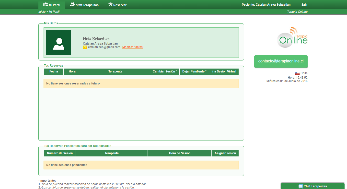 contacto@terapiaonline.cl Mesa Central: 22 712 87 23
